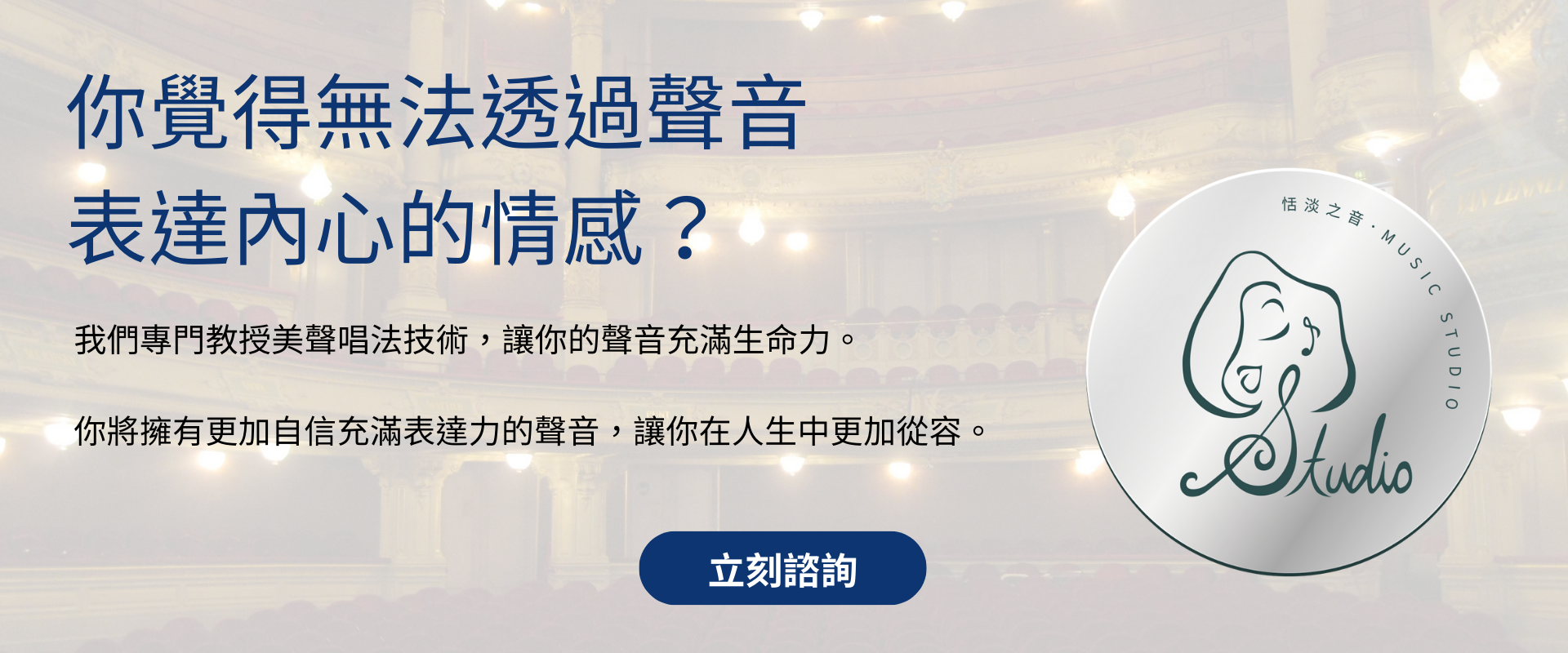 我們是恬淡之音,你專屬的聲樂老師!我們量身打造你的聲樂學習旅程,讓你在台灣也能體驗原汁原味的歐式文化與美感,現在就跟我們一起發掘藏在你靈魂中的美聲吧! Sing from your soul